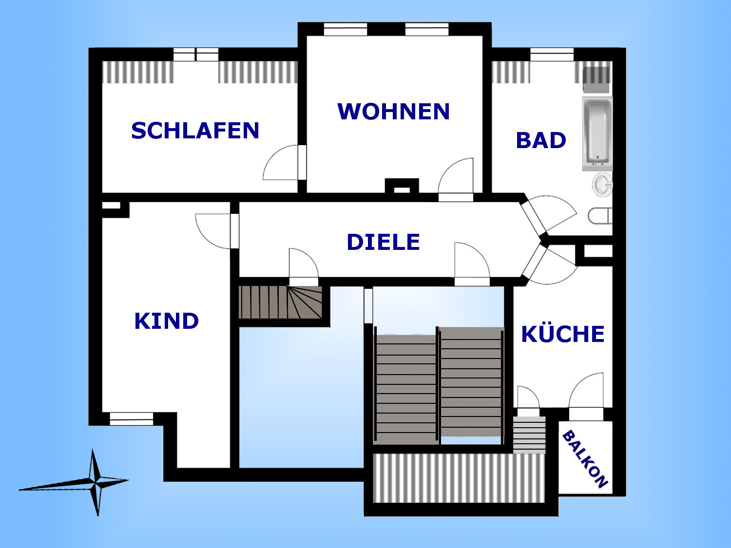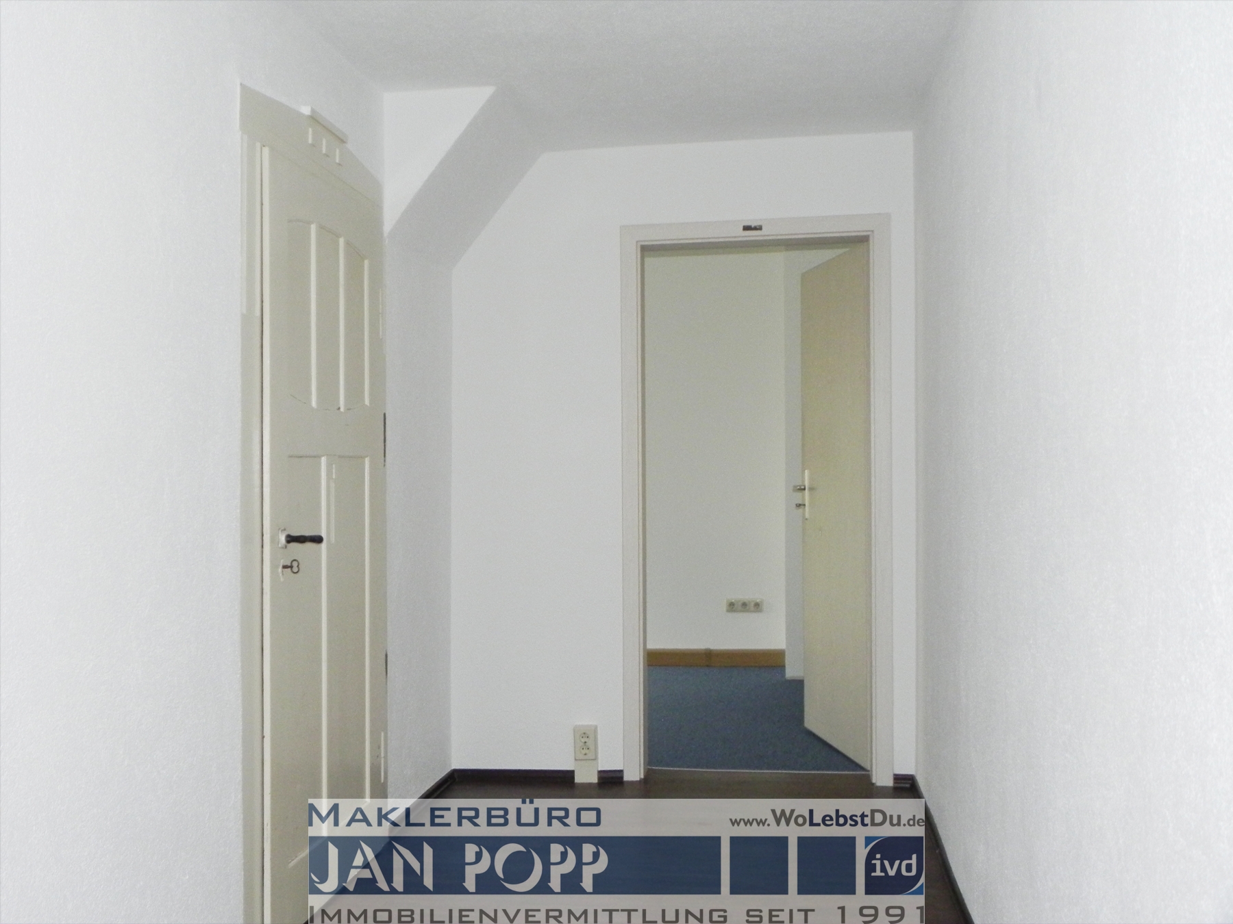 Gut geschnittene und geräumige Etagenwohnung im DG eines gepflegten Mehrfamilienhauses. Drei Zimmer, Küche mit Balkon und Zugang zu einem kleinen Zwischenboden, Bad mit Wanne und Tageslicht. Das Wohnzimmer ist ein Durchgangszimmer zum SZ, ansonsten sind alle Räume vom Flur zu erreichen.