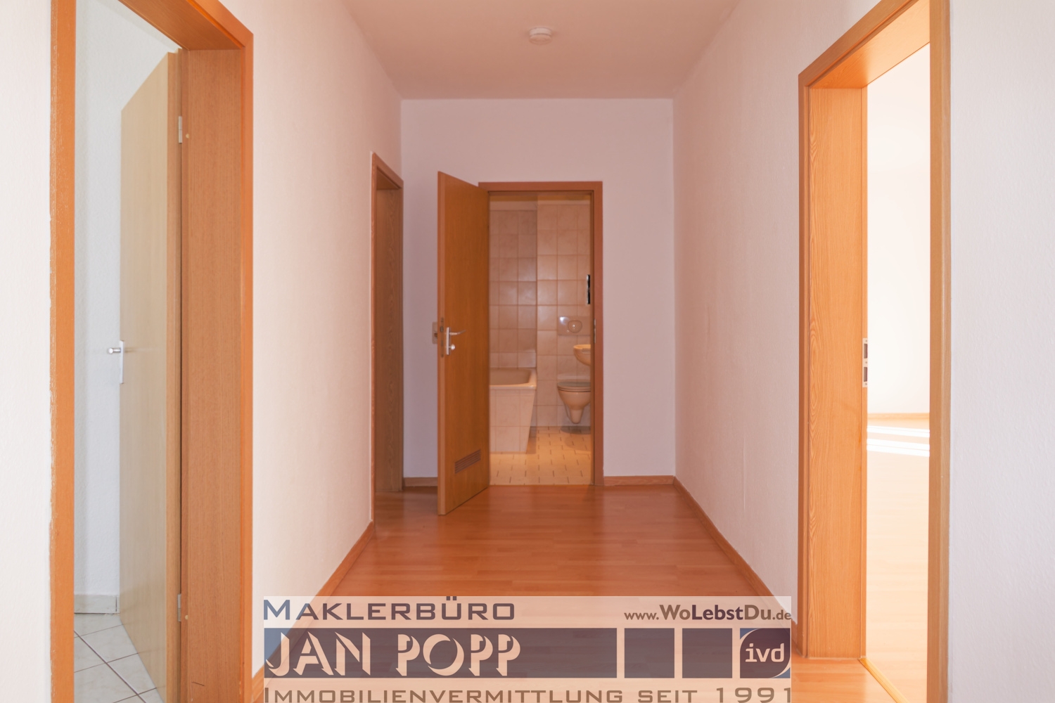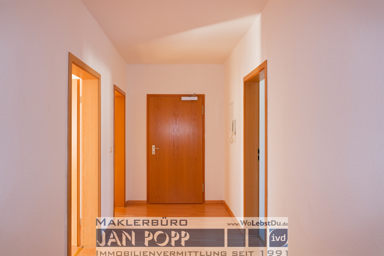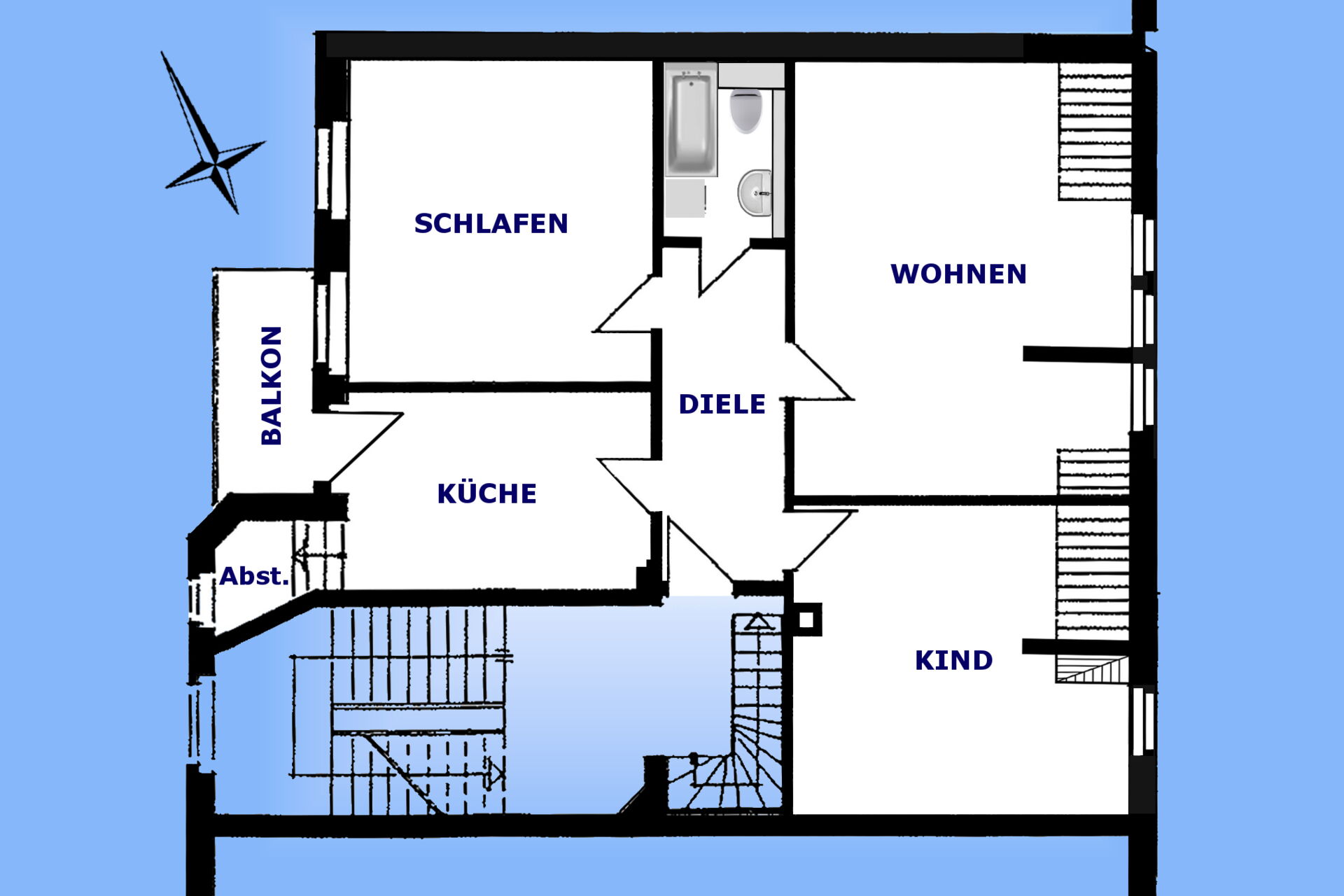Wohn- und Schlafzimmer sind geräumig und das Kinderzimmer groß genug für Bett und Schreibtisch. Die Küche hat Zugang zum Abstellraum sowie zum Balkon, der Waschmaschinenanschluss befindet sich im innenliegenden Wannenbad und die Diele bietet ausreichend Platz für die Garderobe.