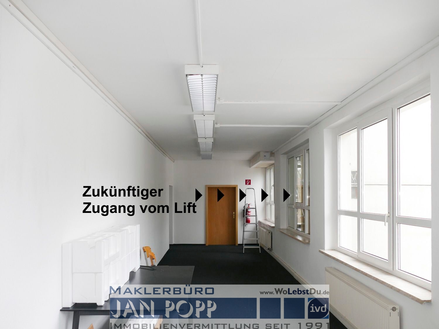 Diese Gewerbeeinheit mit über 500 m² Nutzfläche kann im Grundriss bzw. Ausstattung noch angepasst werden. Der jetzt angegebene Mietpreis bezieht sich aber auf den momentanen Zustand. Je nach Änderungswünschen bewegt sich die Kaltmiete zwischen 4,80 € und 6,00 €/ m².