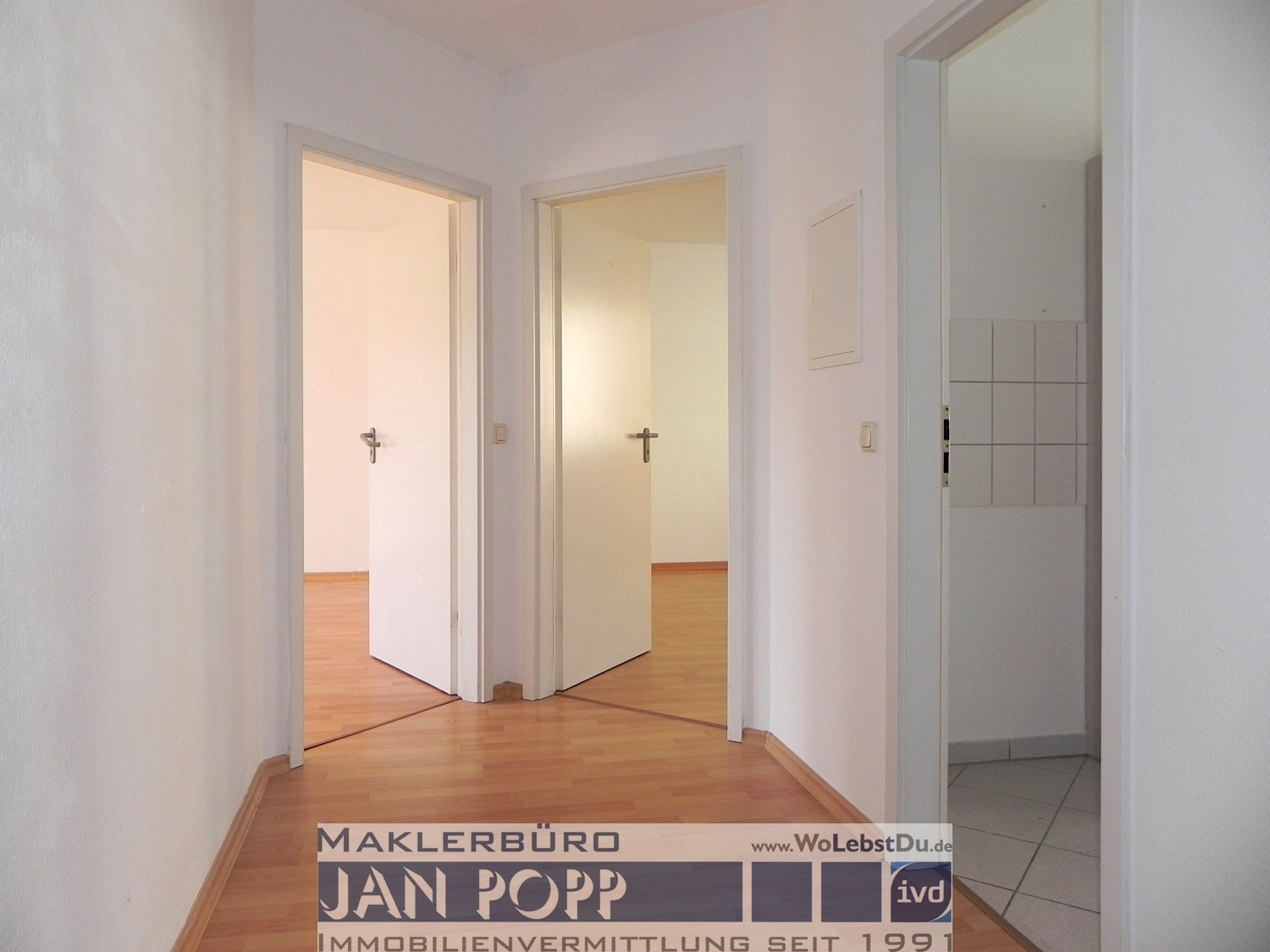 Helle Balkonwohnung mit Einbauküche. Sie befindet sich im 3. OG eines 1994 errichteten Gebäudes. Zwei Zimmer, Küche, Tageslichtbad, Flur, Balkon.