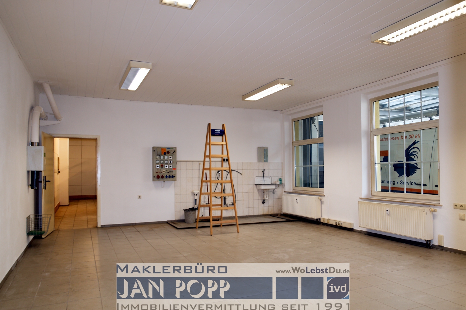 Werkstatt mit 3 Räumen im Erdgeschoss eines Hinterhauses. Es handelt sich aktuell einen Raum, welcher der sich als Empfang oder Pausenbereich mit Miniküche eignet, die eigentliche Werkstatt mit ebenerdiger Zufahrt, sowie einen großen Lagerraum.