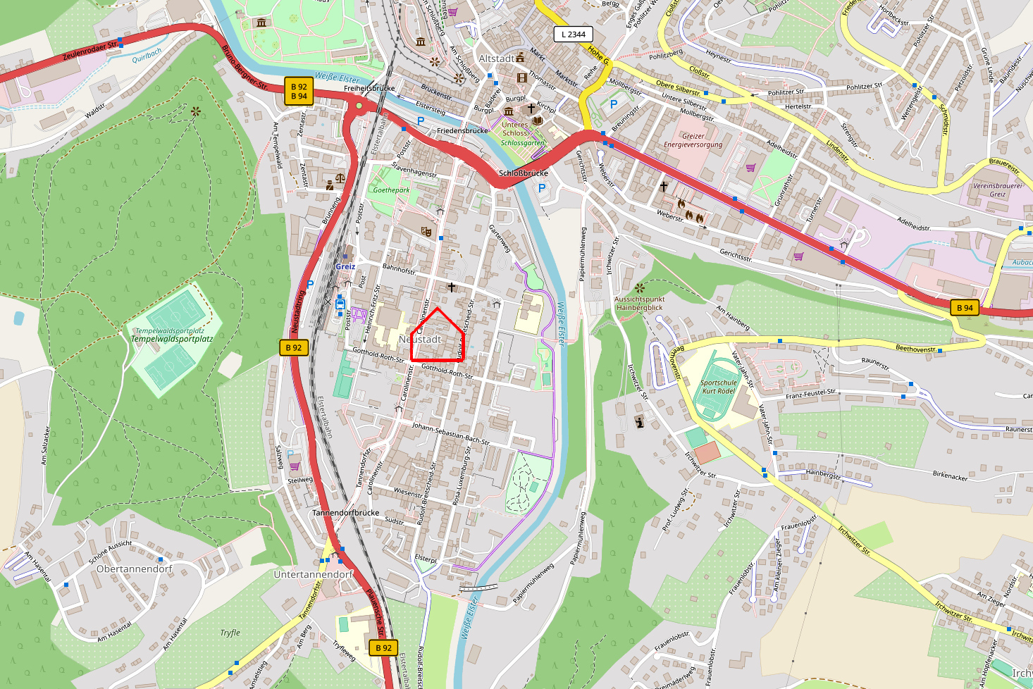 Der aufwendige Umbau der Carolinenstraße ist abgeschlossen und viele der schönen Gründerzeithäuser wurden saniert, so dass die frühere Prunkstraße wiederzuerkennen ist, an welcher auch die Vogtlandhalle Greiz entstand. Aber nicht nur zum Wohnen oder als kultureller Mittelpunkt hat sich dieser Stadtteil entwickelt. Mittlerweile ist hier das Greizer Zentrum für Medizin entstanden. Neben einer Privatklinik finden Sie hier mehrere medizinische Zentren, eine Vielzahl von niedergelassenen Ärzten und Pflegeeinrichtungeneinschaften für Demenzkranke. Wer Ruhe und Entspannung sucht, findet diese am Ufer der "Weißen Elster", an welchem sich auch ein Radweg und einer der schönsten Spielplätze der Stadt befinden.