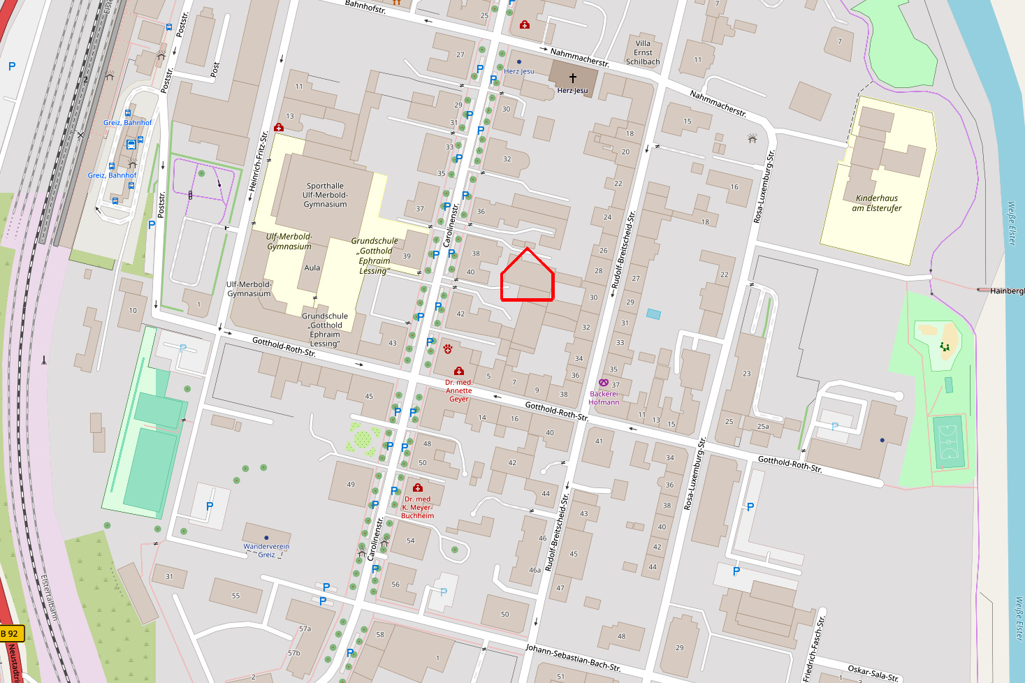Der aufwendige Umbau der Carolinenstraße ist abgeschlossen und viele der schönen Gründerzeithäuser wurden saniert, so dass die frühere Prunkstraße wiederzuerkennen ist, an welcher auch die Vogtlandhalle Greiz entstand. Aber nicht nur zum Wohnen oder als kultureller Mittelpunkt hat sich dieser Stadtteil entwickelt. Mittlerweile ist hier das Greizer Zentrum für Medizin entstanden. Neben einer Privatklinik finden Sie hier mehrere medizinische Zentren, eine Vielzahl von niedergelassenen Ärzten und Pflegeeinrichtungeneinschaften für Demenzkranke. Wer Ruhe und Entspannung sucht, findet diese am Ufer der "Weißen Elster", an welchem sich auch ein Radweg und einer der schönsten Spielplätze der Stadt befinden.