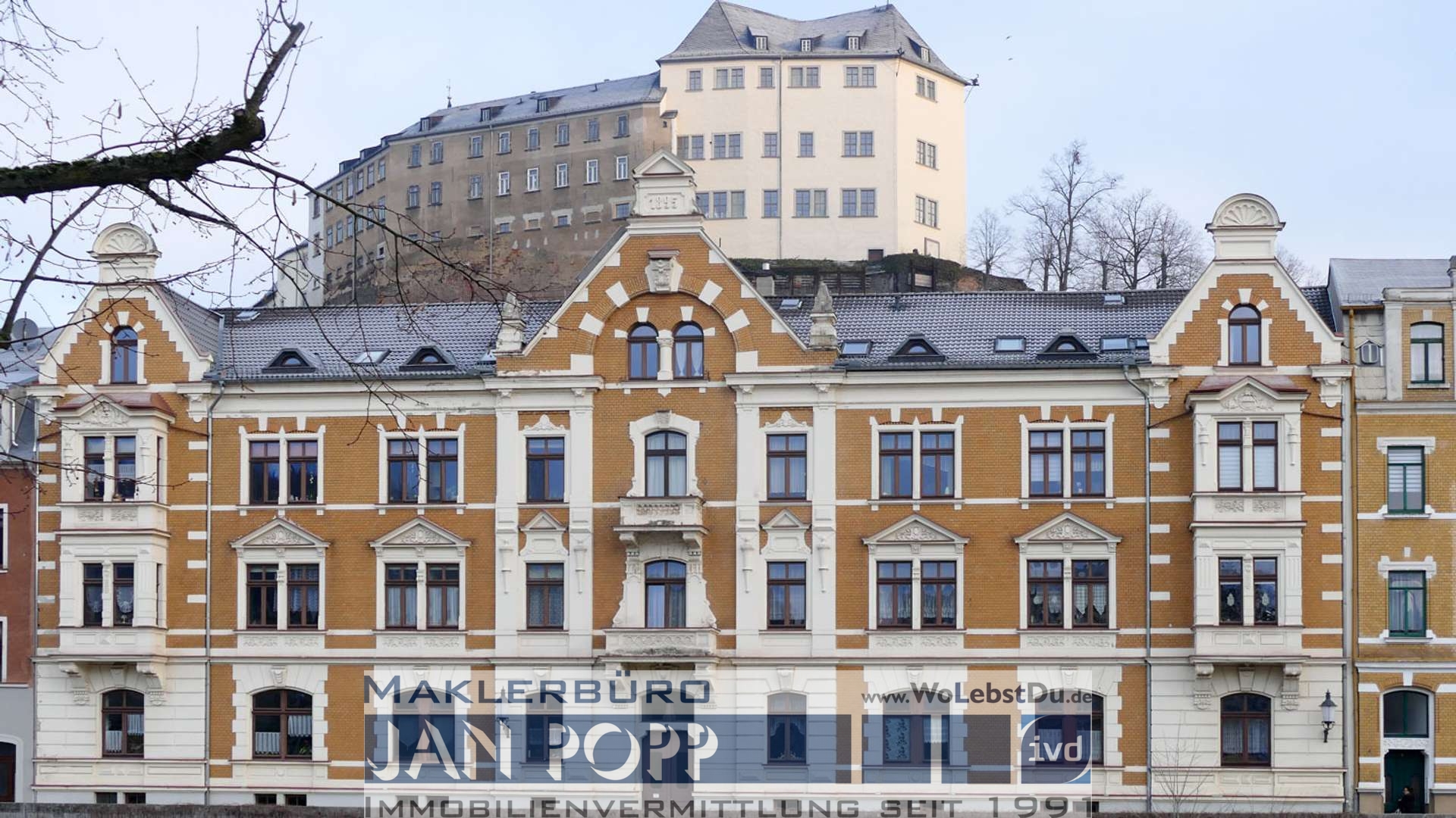 Das ca. 1890 errichtete und unter Denkmalschutz stehende Gebäude ist das prägnanteste Gebäude der prächtigen gründerzeitlichen Häuserzeile, welche bei der Einfahrt nach Greiz aus Richtung Gera und Plauen jeden in den Bann zieht. Das Haus wurde 1996/1997 denkmalschutzgerecht saniert und liegt im Sanierungsgebiet. Die Bewohner schätzen neben der hervorragenden Lage auch, das großzügige Treppenhaus und natürlich den Lift. Das Anwesen ist über den Elstersteig mit seinen Gründerzeitgebäuden und der daneben fliesenden "Weißen Elster" und auch über die Brückenstraße mit Geschäften, Gaststätten, Arztpraxen und Apotheke zu erreichen.
